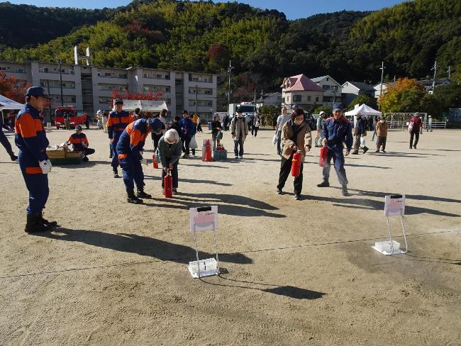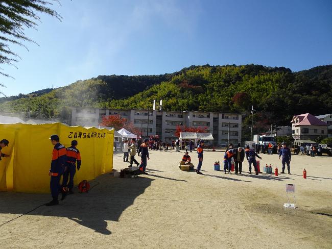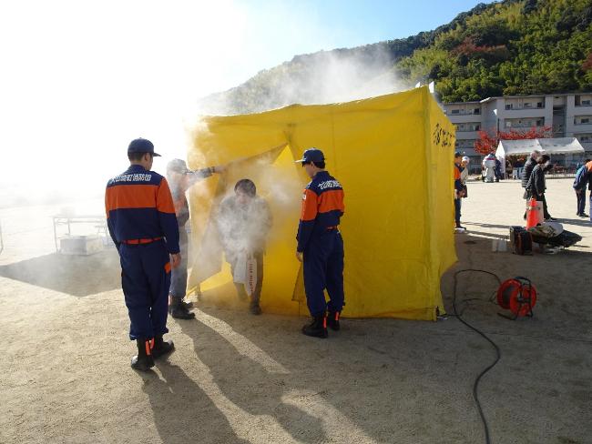 第二大山崎小学校を会場として実施される大山崎町総合防災訓練に伴い、防災フェアとして消防コーナーを開設し、体験型訓練を通じて、地域住民の皆様に防災を身近に感じてもらいました。