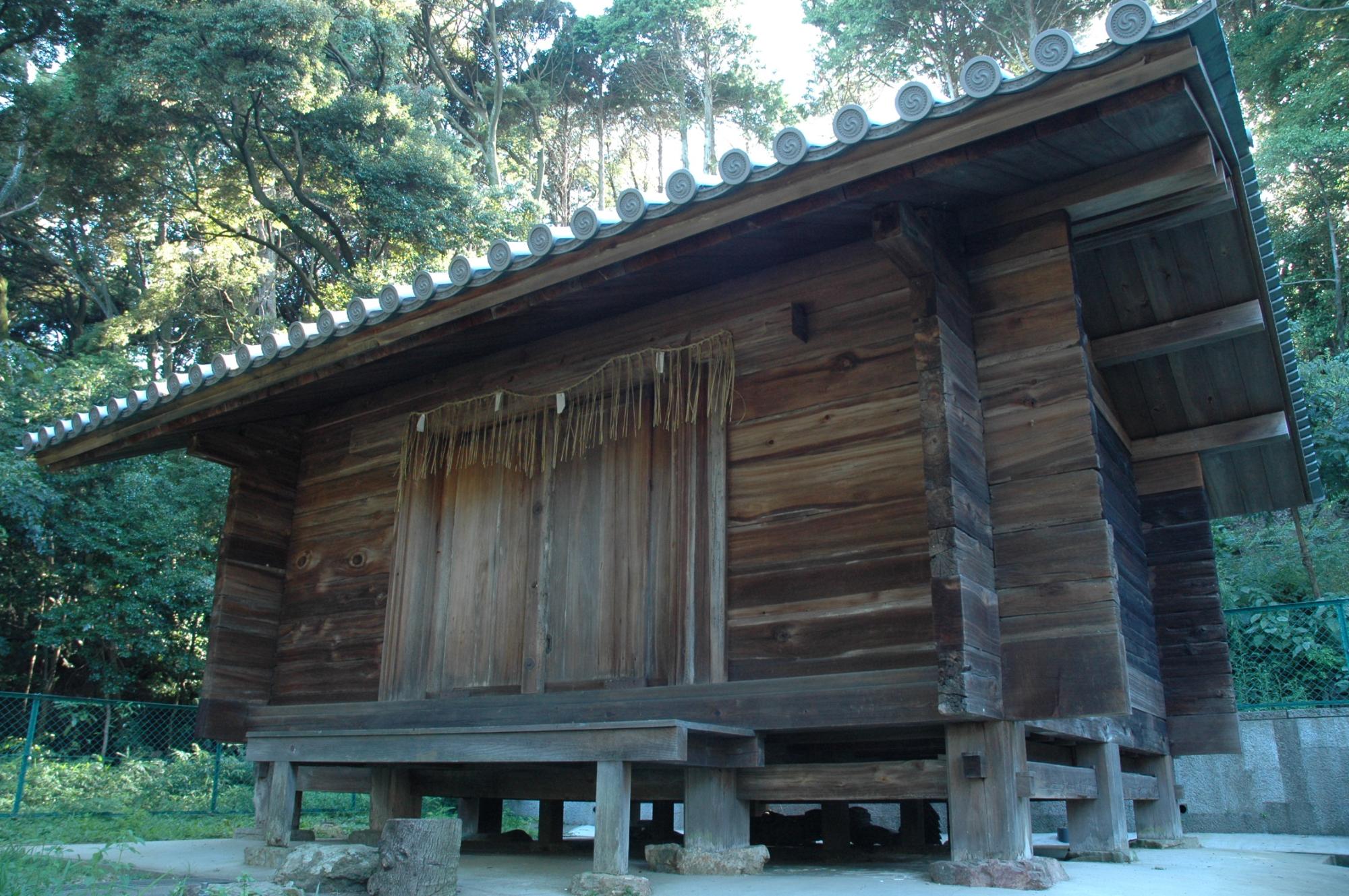 また、本殿横にある神輿庫は板倉形式という珍しい形式で、鎌倉時代前期の建築で重要文化財に指定されています。