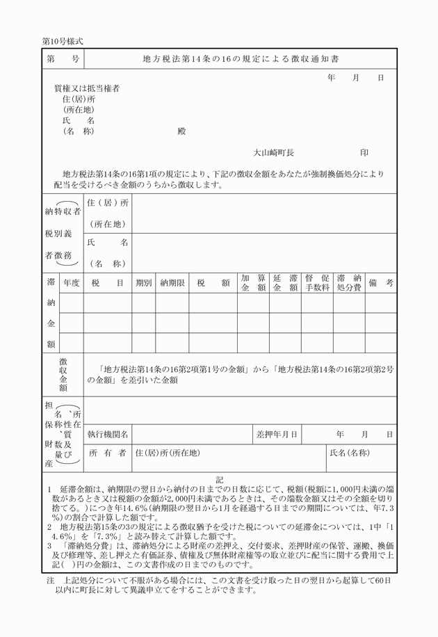 10 | 地方税法第14条の16の規定による徴収通知書 | 法第14条の16第4項 |