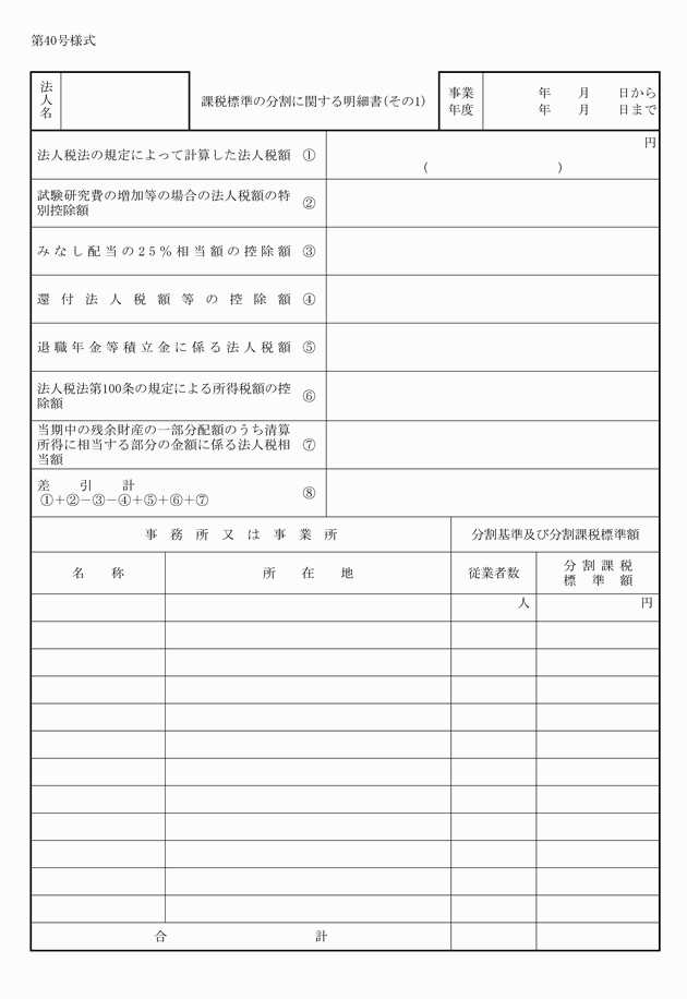 40 | 課税標準の分割に関する明細書 | 法第321条の13第1項 |