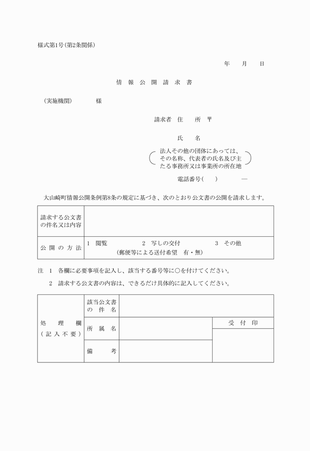 第1条 この規則は、大山崎町情報公開条例(平成12年条例第39号。以下「条例」という。)の施行に関し必要な事項を定めるものとする。