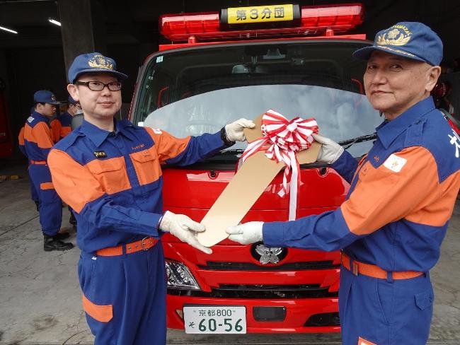 新車両の配備により、大山崎町民の皆様のために、有事の際の速やかな消火や地域の安心安全に役立つことを願っています。また、第2分団についてもさらなるご活躍を期待していきたいと思います。