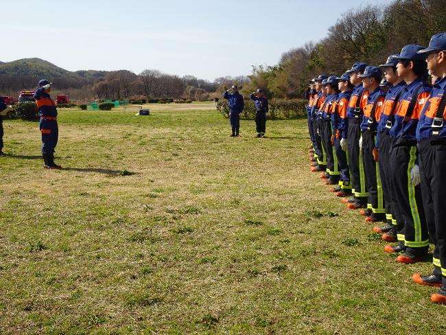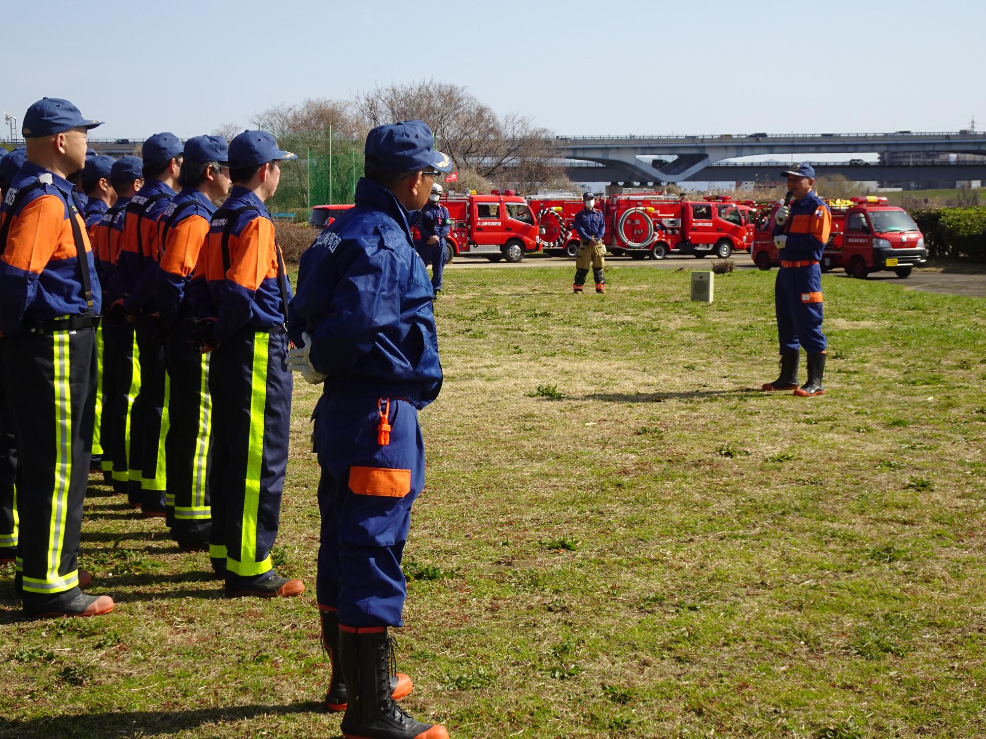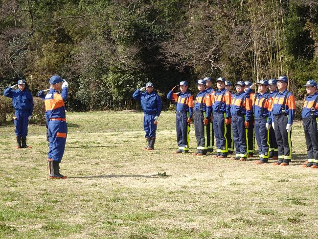 この訓練は、経験の浅い消防団員を対象に、団員として基礎となる規律行動を身につけ、消防団活動が行える基礎を作り、また、消防団の中核を担う経験を積んだ団員を対象に部隊の指揮者としての職責を自覚し、安全管理を含めた知識と技術を向上させることを目的に行うものです。