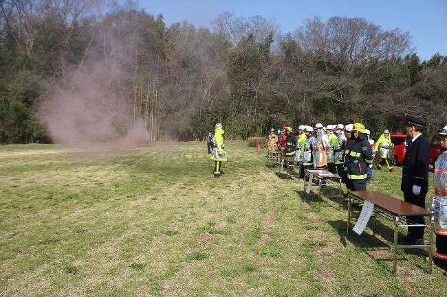 この訓練は、消防団員としての任務を遂行する上で、分団の中核を担う部長職以上の団員に、部隊の指揮者としての職責を自覚させるとともに、安全管理の意義・目的について理解し、危険性を有する活動環境で、団員の安全を保持するための手段について学ぶ目的として行います。